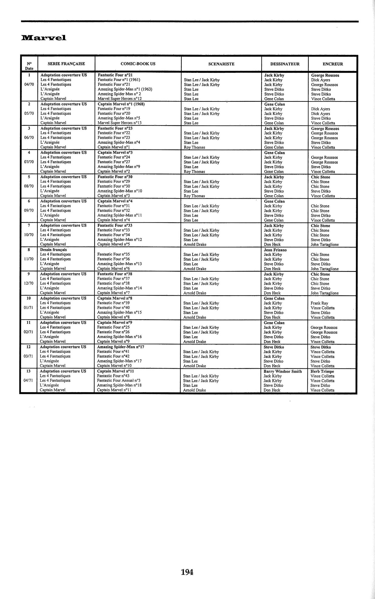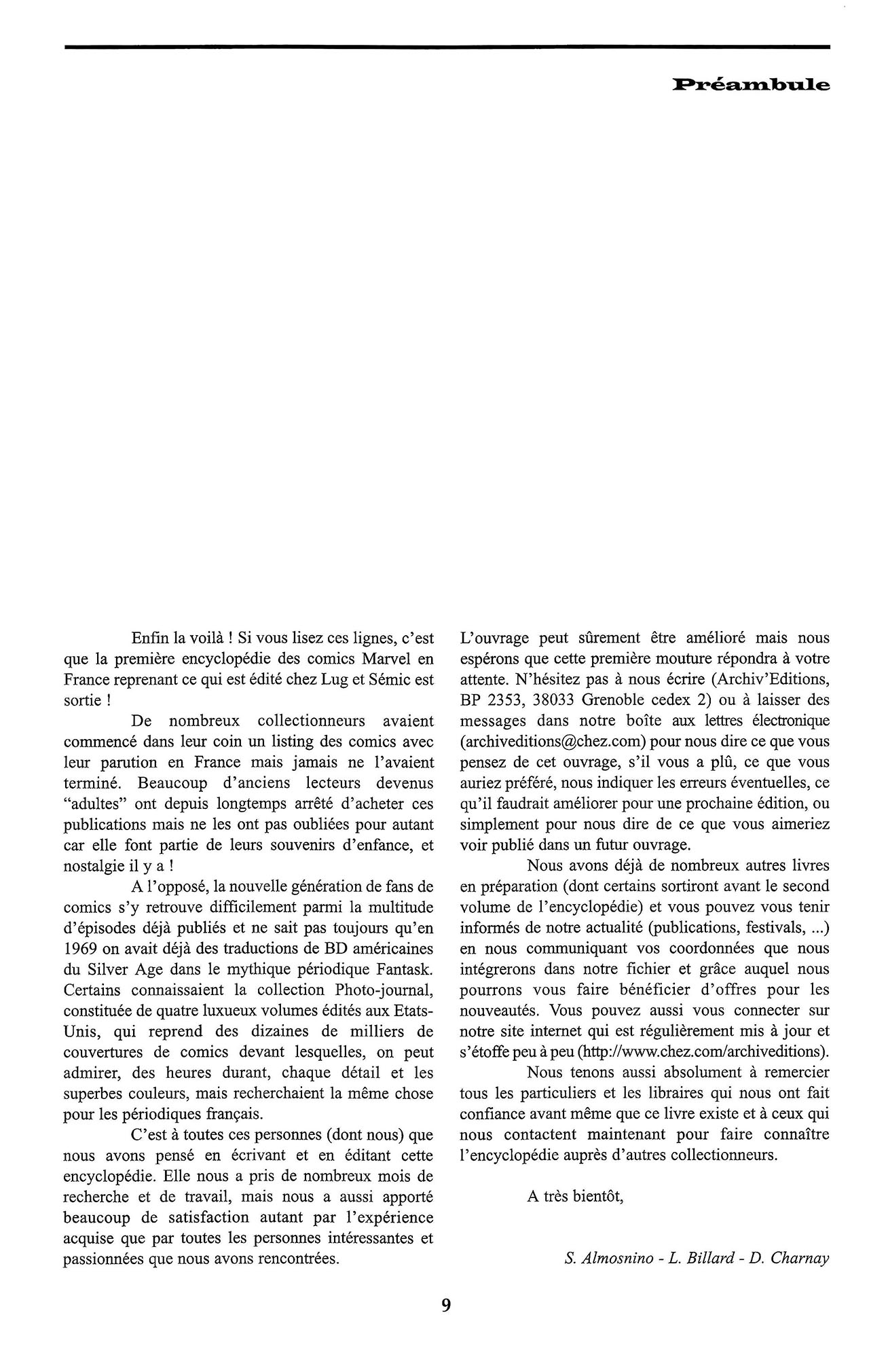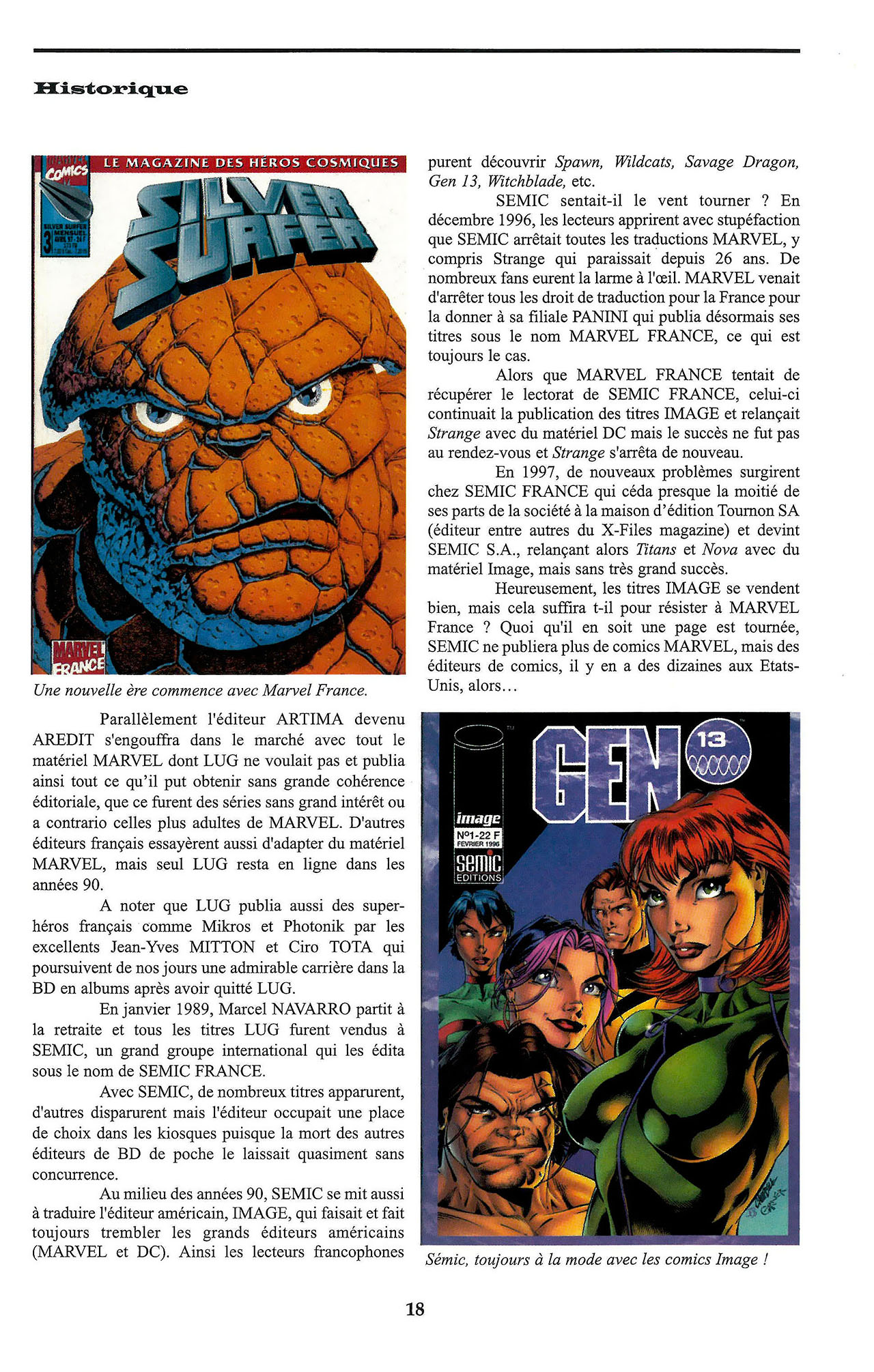 Fin 1998 a été publié un livre absolument remarquable pour tous les fans des super héros Marvel : une « Encyclopédie des comics MARVEL en France volume 1 Les éditions LUG-SEMIC ». Les auteurs, Stéphane Almosnino, Lionel Billard et Didier Charnay, ont eu le projet fou de compiler les couvertures de tous les comics Marvel publiés dans notre beau pays ; le tome 1 concerne LUG et SEMIC et le tome 2 est consacré à AREDIT-ARTIMA.