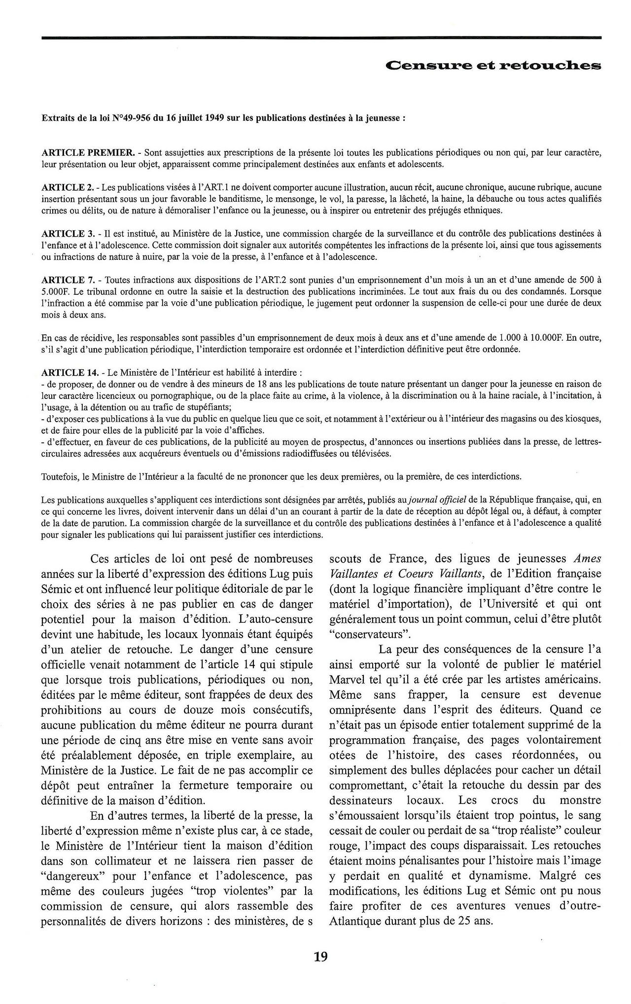 Suivent dix pages passionnantes sur l’arrivée des comics Marvel en France, leur censure et quelques légendes urbaines 🙂