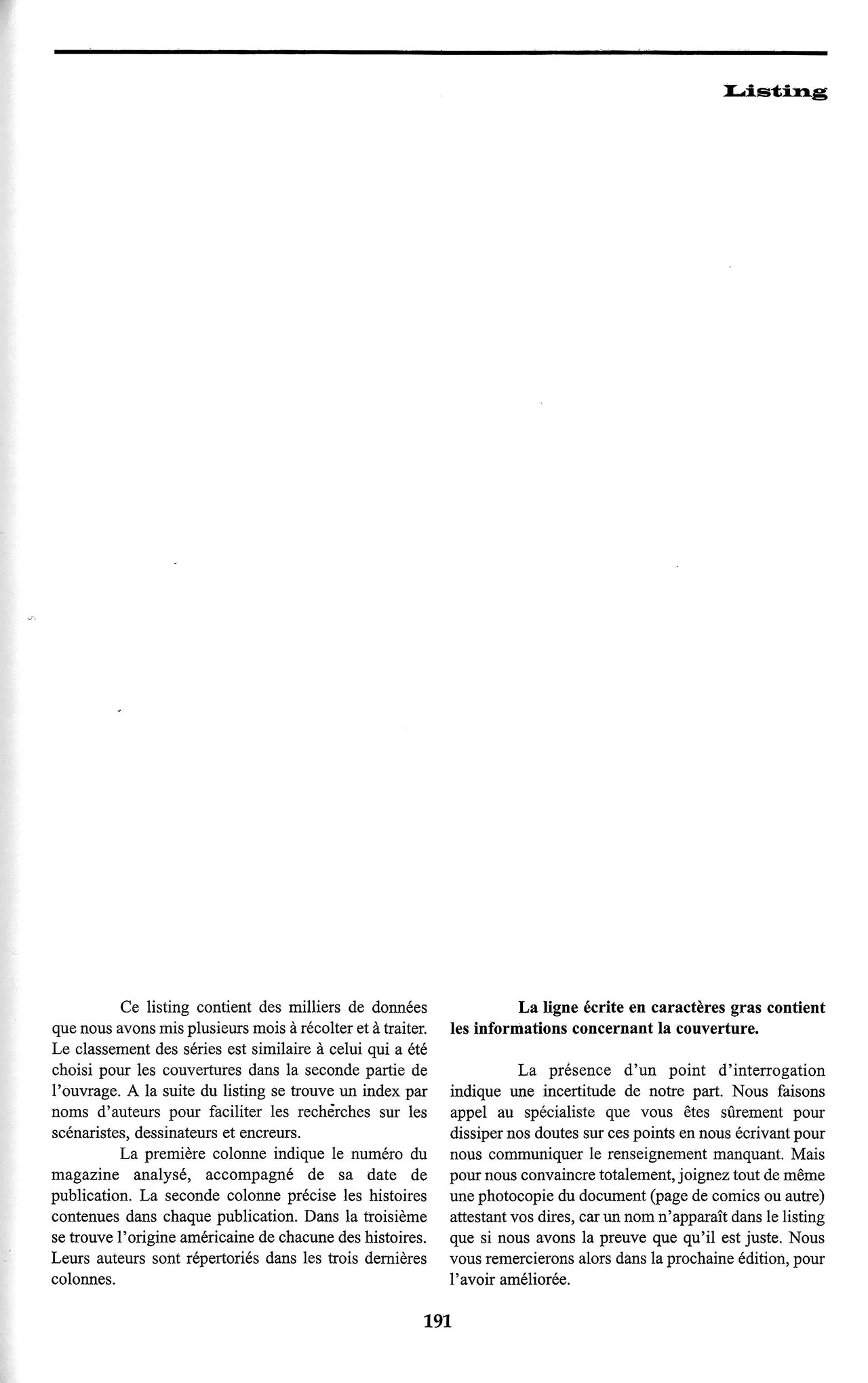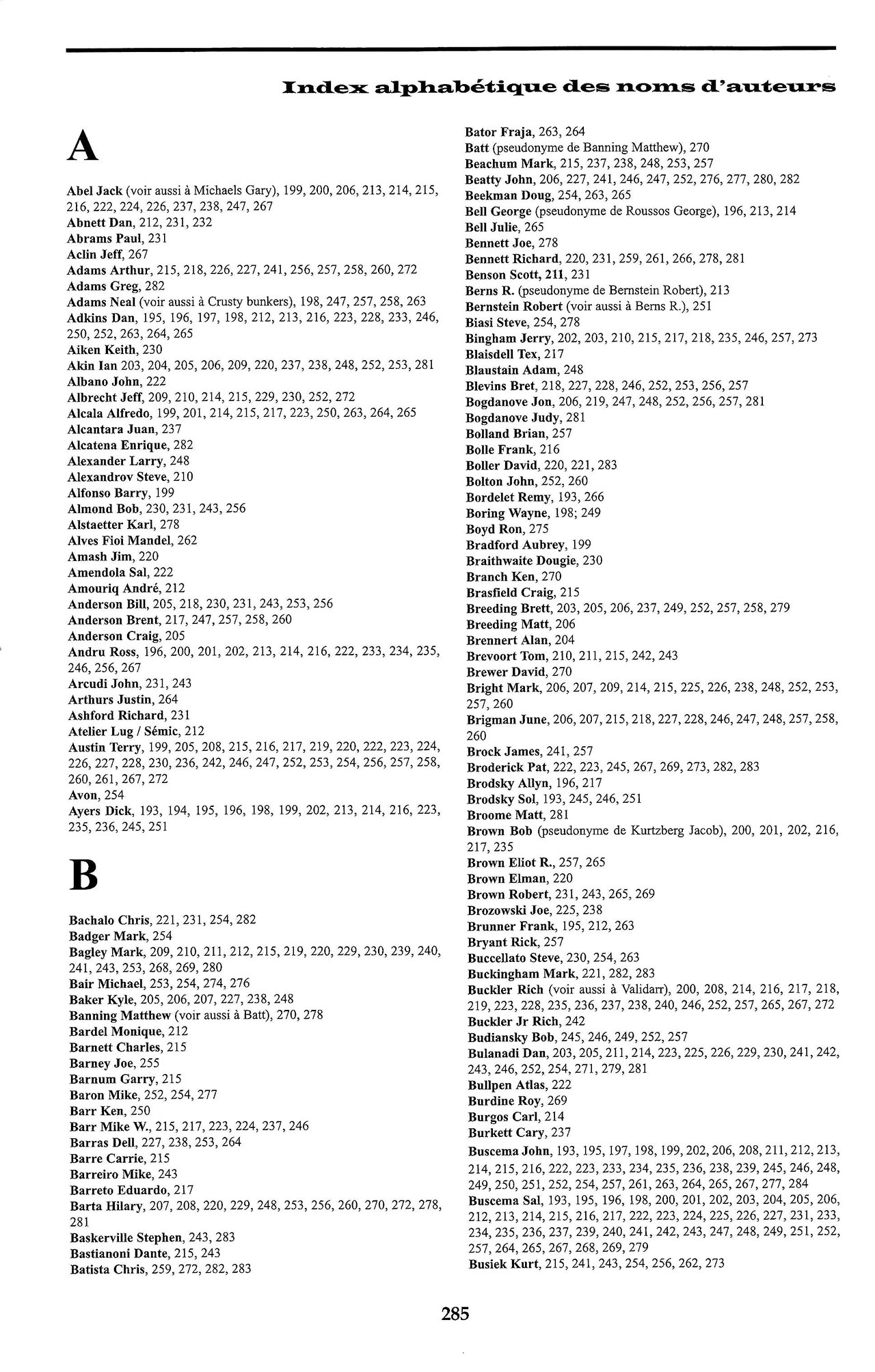 La dernière partie est composée de listes avec, notamment, les références en VO de chaque BD publiée par LUG ; le travail titanesque pour réaliser ça… Bravo les gars, merci pour ce livre de référence.
