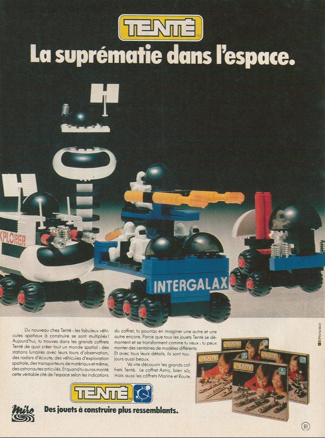 Voici des publicités sur les jouets de construction de la marque Tenté, parues dans le Journal de Mickey des années 70 et 80.