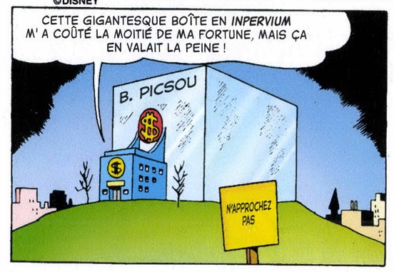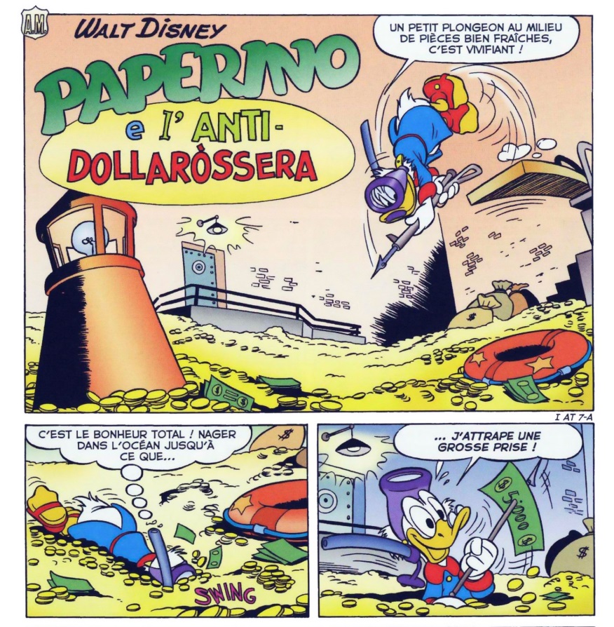 Tonton Picsou en a fait le centre de sa vie et y passe le plus clair de son temps libre, y compris pour son sport quotidien, le plongeon dans les pièces d’or, voir la plongée sous-marine !