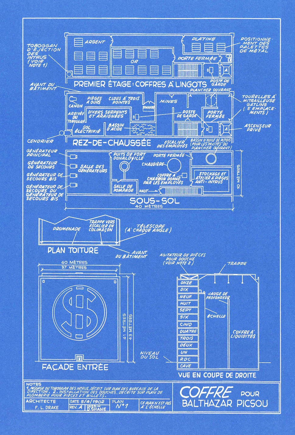 Étant immensément riche, Picsou possèdera même plusieurs coffres (certains factices pour tromper les Rapetou, d’autres réels).