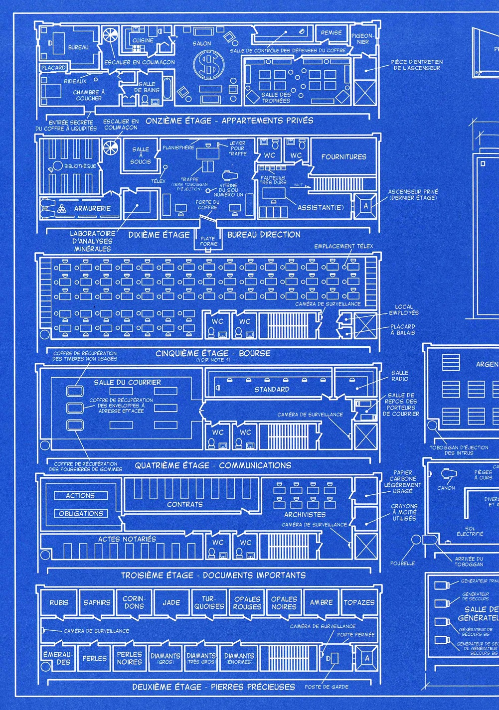 En France, le coffre-fort arbore un magnifique F géant, symbole du Franc, notre monnaie nationale ! On notera néanmoins que son design change selon les décennies et les dessinateurs, oscillant entre un cube assez laid et un coffre doté d’une belle coupole.