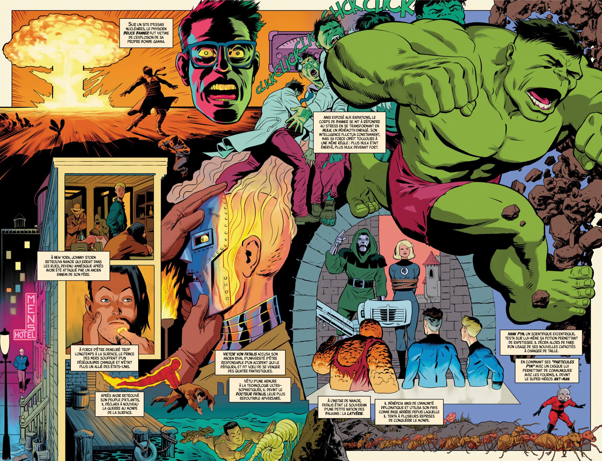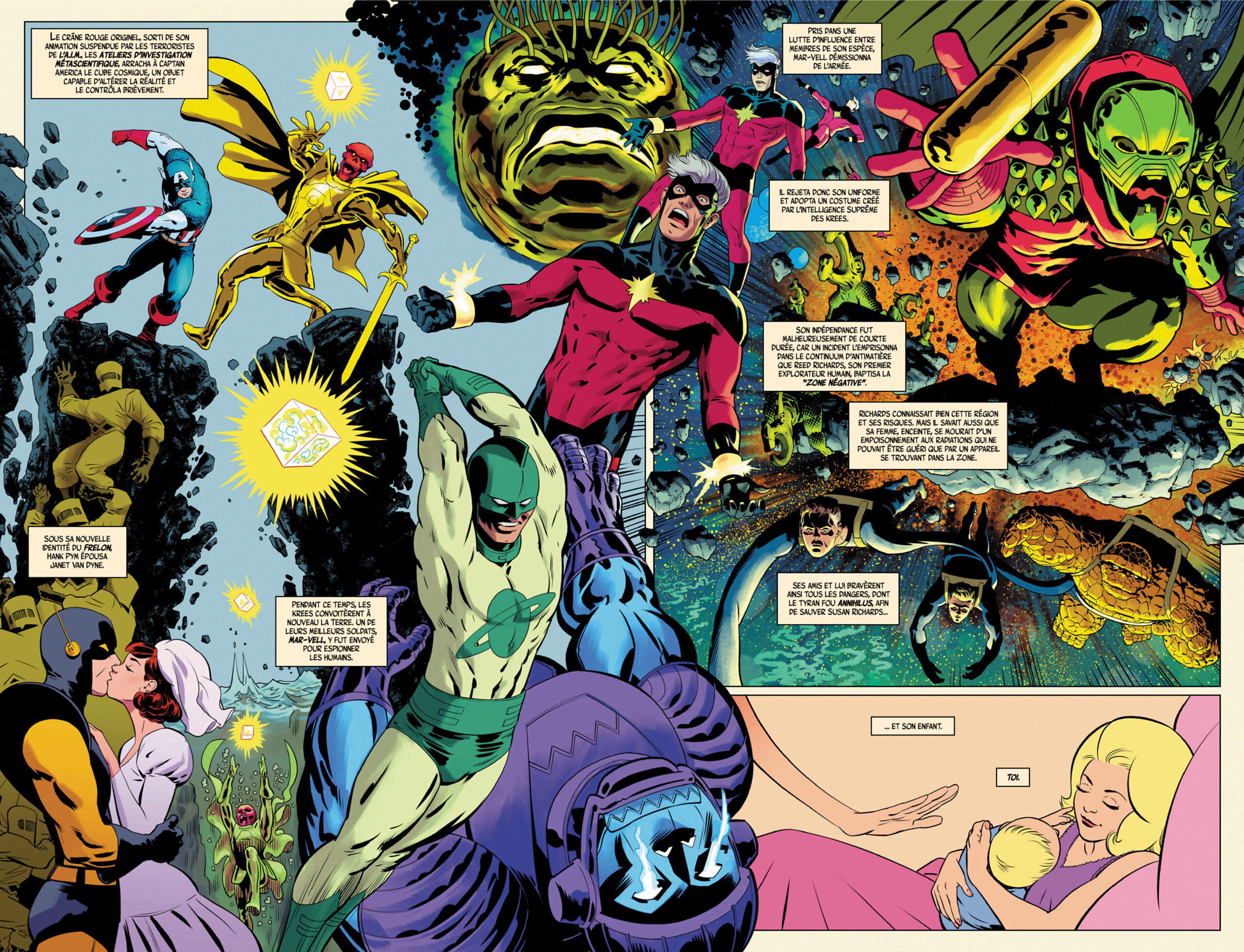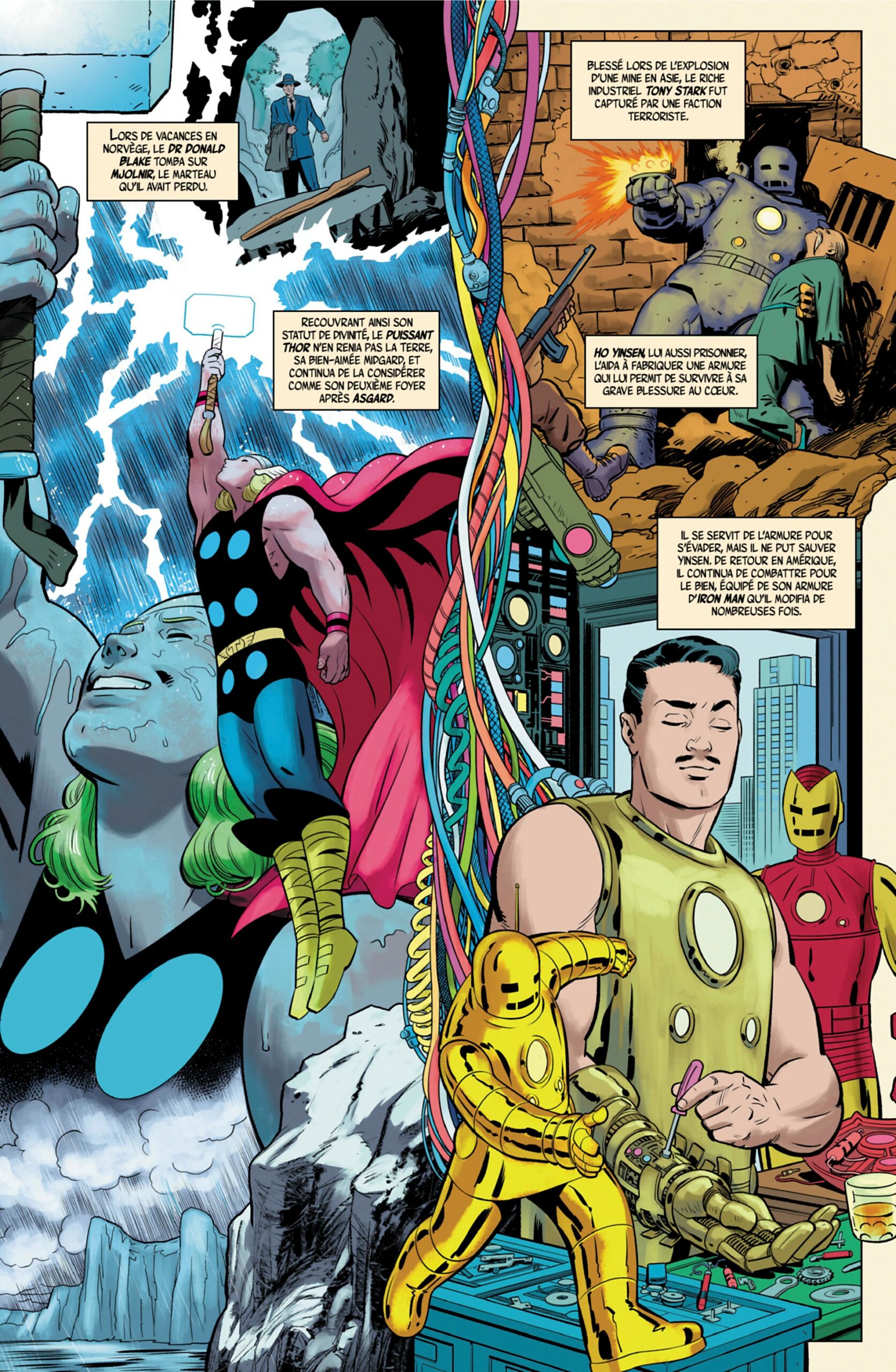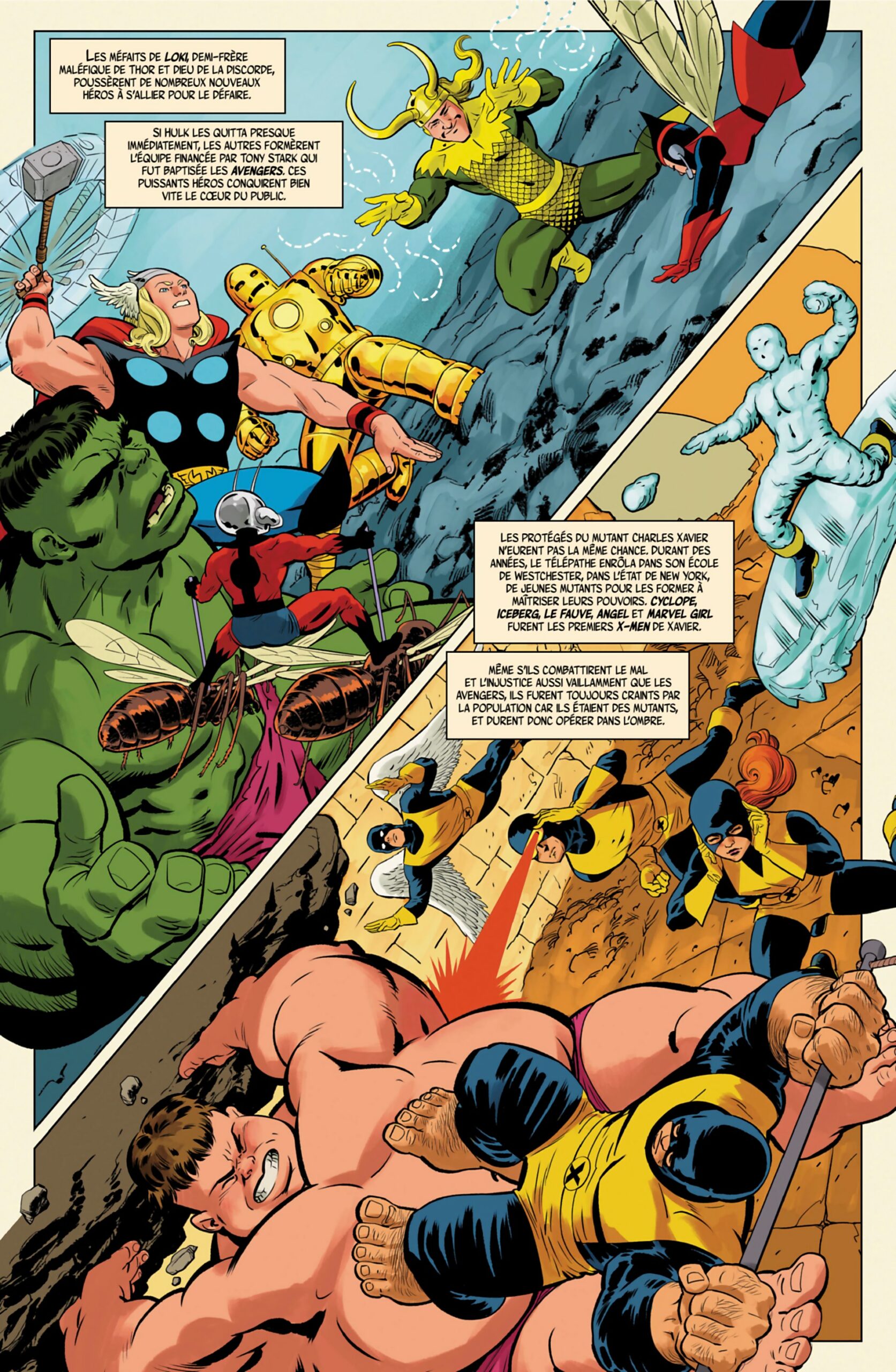 Voici plusieurs extraits pour vous donner envie de l’acheter avec, à la fin, quelques images permettant de retrouver les références en VO des grands évènements de l’univers Marvel.