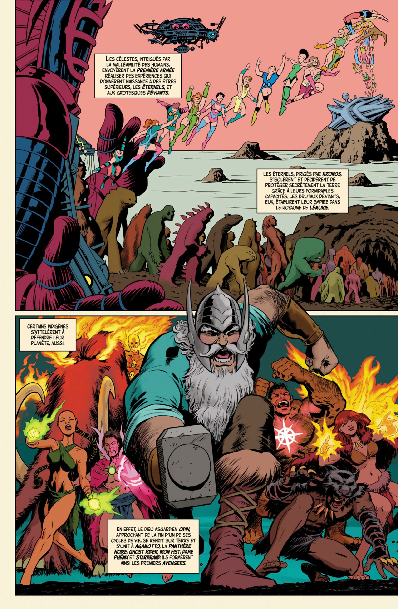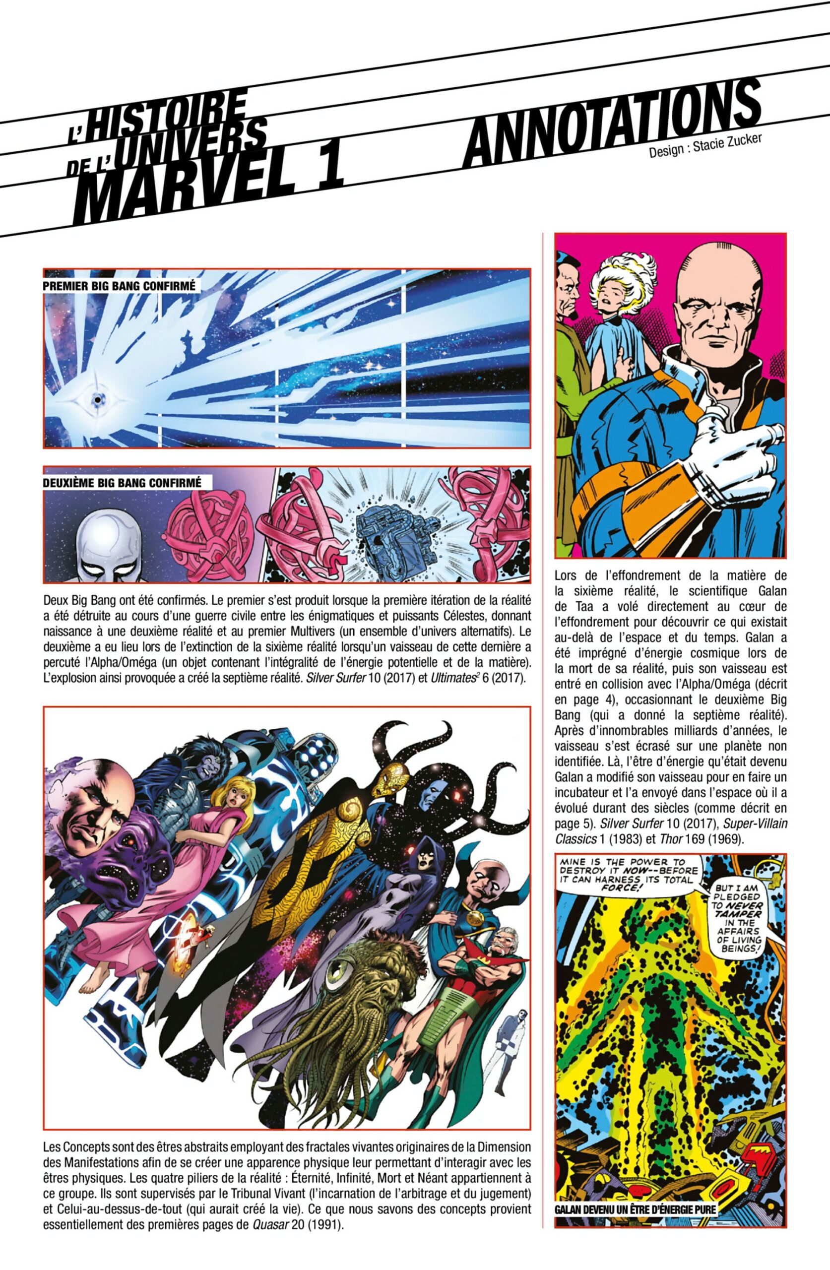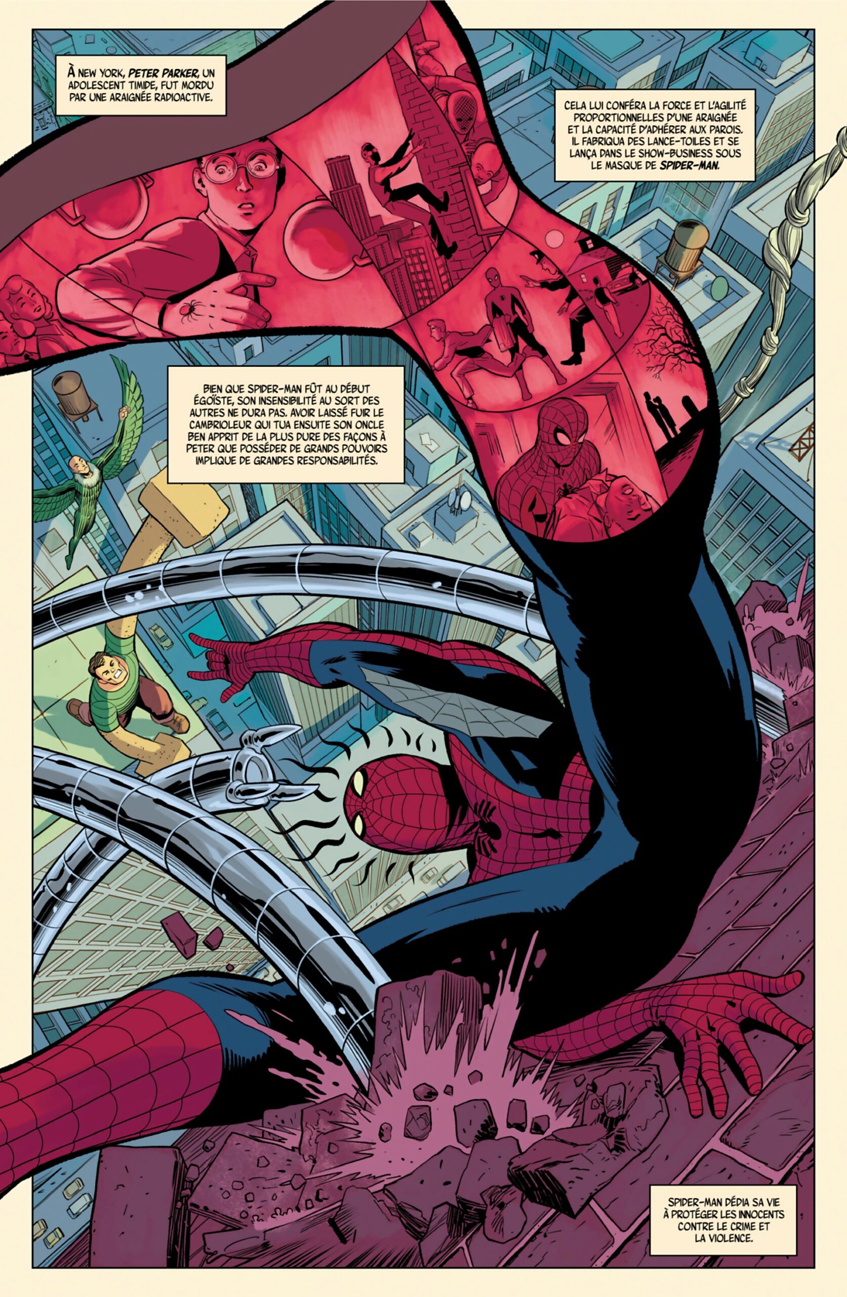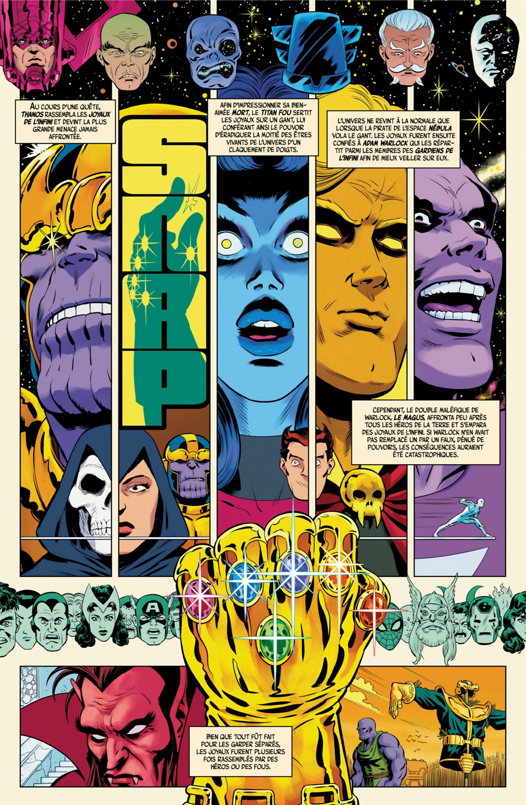 Voici plusieurs extraits pour vous donner envie de l’acheter avec, à la fin, quelques images permettant de retrouver les références en VO des grands évènements de l’univers Marvel.